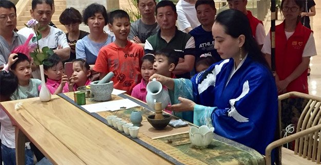 2018年5月18日-20日,金華市博物館為迎接2018年國際博物館日,特地舉辦了以茶文化為主題的518系列活動。2018年博物館日主題為 “超級連接的博物館:新方法、新公眾”。本次活動,博物館將通過館藏文物、場景與現(xiàn)代社會進行超鏈接。通過一展、一電影、一講座,將宋代茶文化知識傳播給觀眾。5月18日,市博物館內(nèi)展出了博物館館藏從西晉到清代的古代茶具,19日-20日,博物館舉辦了茶藝表演,現(xiàn)場展示了宋代斗茶、清代三清茶及現(xiàn)代生活茶;在博物館地下報告廳放映了老舍先生小說同名電影《茶館》;并組織舉辦了文博大講堂—繼承·傳承。