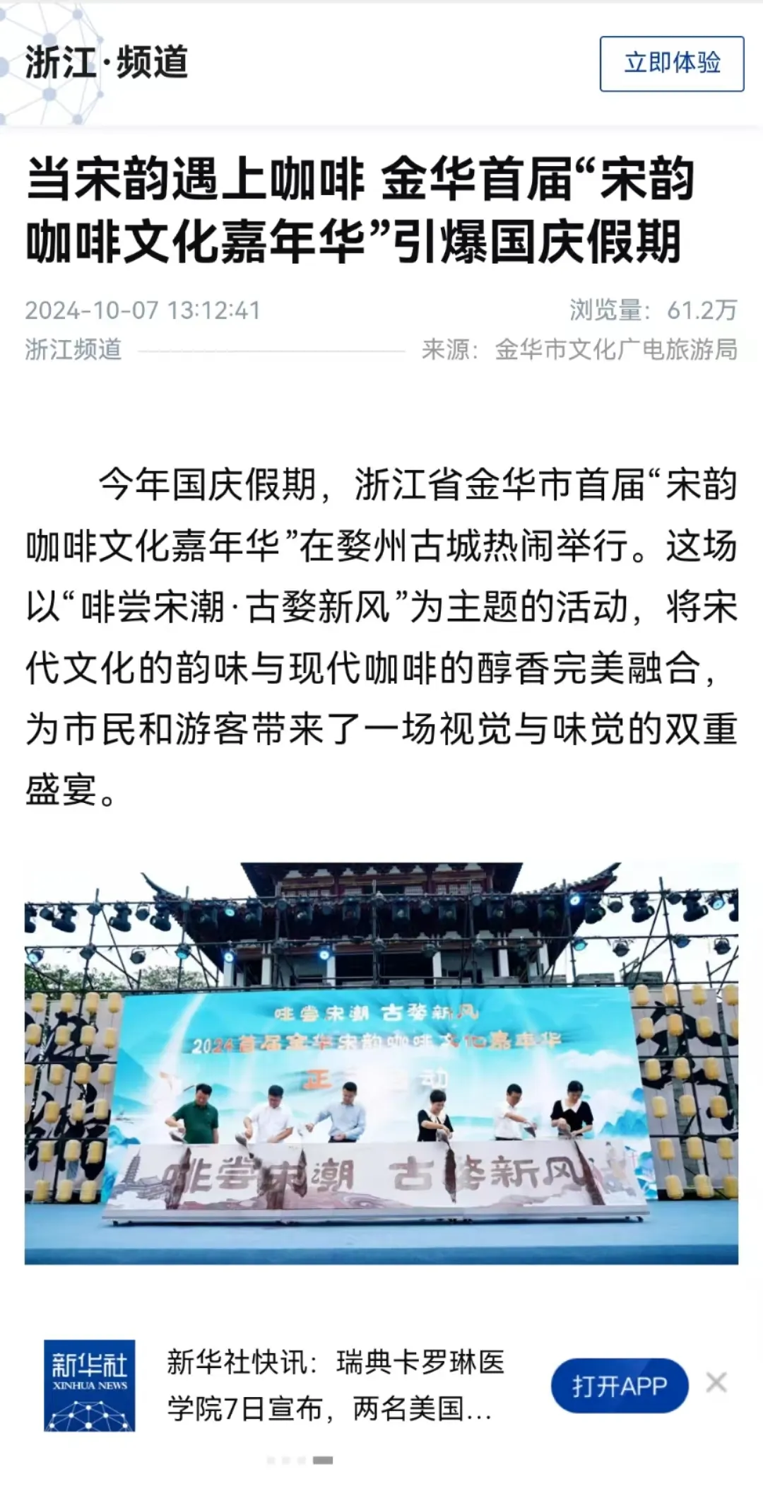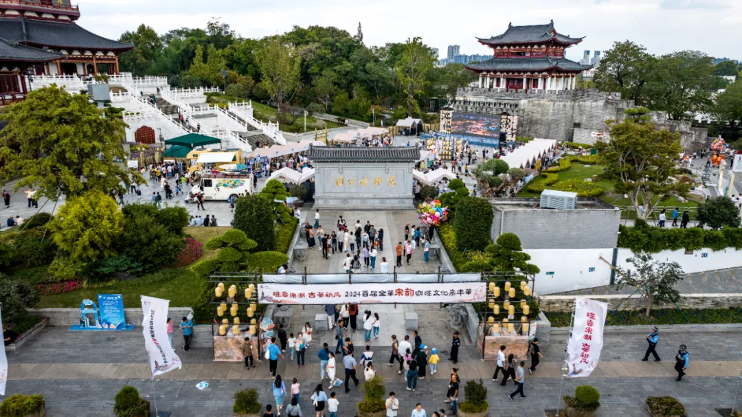 婺州古城本次的國慶活動,不僅展現(xiàn)了古城深厚的文化底蘊,還巧妙地融合了現(xiàn)代生活元素,為游客帶來了全新的體驗。宋韻咖啡文化嘉年華吸引了超過30家知名咖啡品牌及眾多本土咖啡品牌參與;宋韻主題婚禮秀聯(lián)動三江六岸,一秒夢回大宋的浪漫;剛剛開廟的金華府文廟開展了非遺市集…