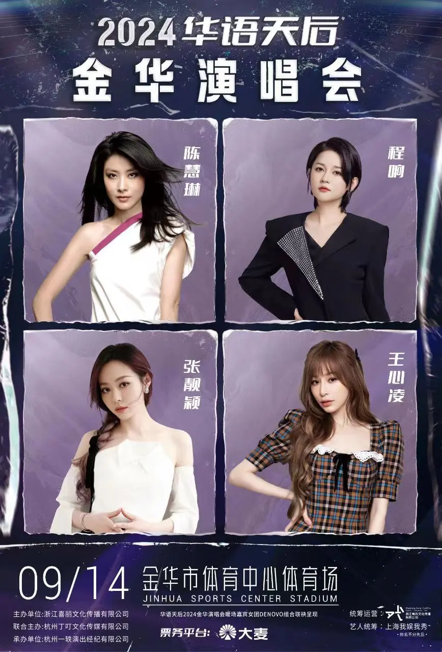 9月14日金華將迎來2024華語天后演唱會,陳慧琳、張靚穎、王心凌、程響齊聚金華市體育中心體育場!