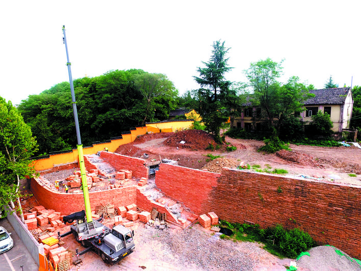 昨天,在位于市區(qū)古子城酒坊巷與將軍路交叉路口的城垣遺址示范段工地上, 金華城投集團(tuán)組織施工人員用紅砂巖砌筑城墻,進(jìn)行收尾施工。據(jù)介紹,城垣遺址示范段長(zhǎng)155米,預(yù)計(jì)本月下旬完工。