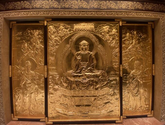 東方三圣銅浮雕