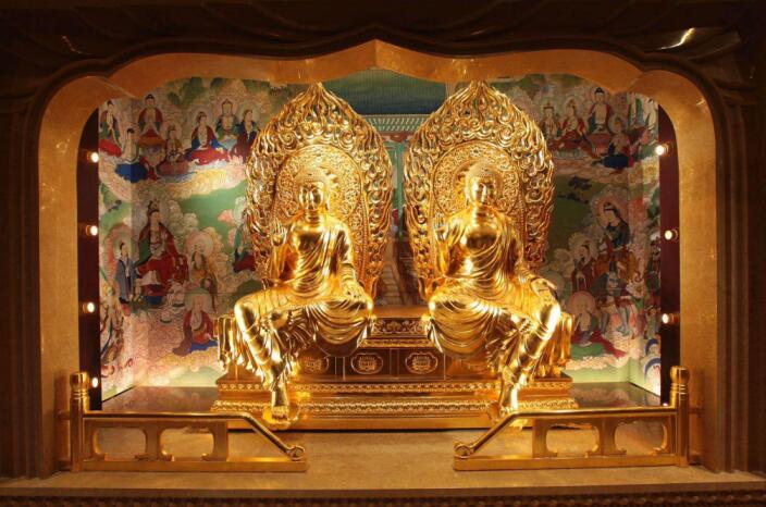 釋迦牟尼、多寶佛雕像/法華經(jīng)變圖