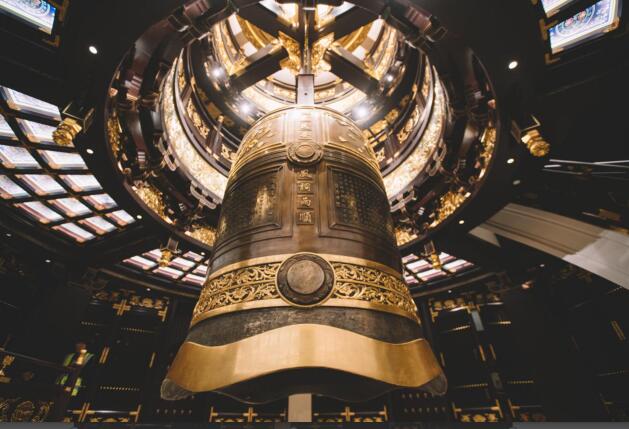 面前看到的這口青銅祈福大鐘,總重11.8噸,鐘高3.6米,鐘底裙邊最大直徑2.2米,銅鐘是由南京晨光公司專業(yè)制作而成,公司前身是1865年李鴻章創(chuàng)辦的金陵制造局,是中國(guó)歷史最悠久的現(xiàn)代工業(yè)鑄造廠之一。也是國(guó)家特定的唯一國(guó)禮承制單位,如97年香港回歸國(guó)務(wù)院贈(zèng)送的國(guó)禮香港紫荊…