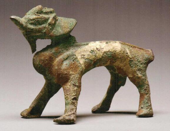 吳越國(907—978)金華萬佛塔地宮出土通高5.9厘米浙江省博物館藏供養(yǎng)器。尖嘴,獨角,下頜有須,腰收胸挺,四肢叉立,尾斷。形象古拙,強勁穩(wěn)健。金華萬佛塔地宮出土文物中,除了制作精美的各類佛像、藏經(jīng)卷或阿育王塔等外,還出土了銅龍、銅馬、銅麒麟等富有神話色彩和民間風(fēng)趣…