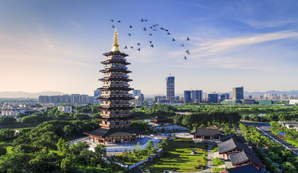 萬佛塔,老金華城地標(biāo)性建筑,始建于北宋嘉佑七年(1062)至治平元年(1064)之間。原址位于浙江省金華市區(qū)塔下寺的山坡上,九層八角樓閣式磚木結(jié)構(gòu)建筑,由佛僧居政倡導(dǎo)建成,初名叫“密印寺塔”。因塔身外壁上半部的每塊磚上雕有不同的精美如來佛像,一排排地結(jié)跏跌坐在蓮臺上,期數(shù)萬計(jì),故稱“萬佛塔”。