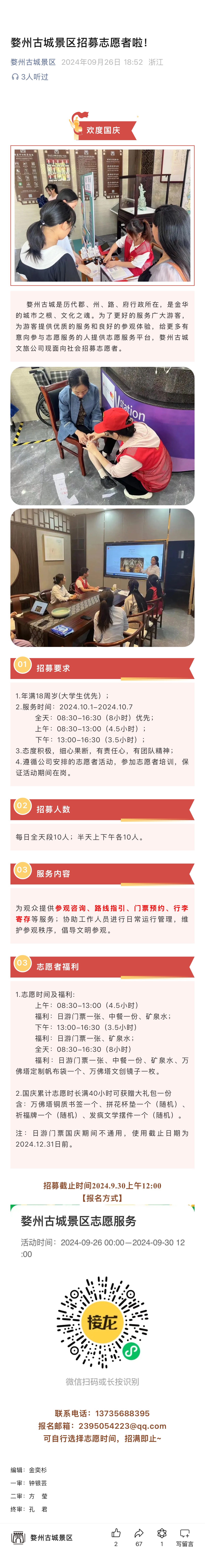 婺州古城景區(qū)招募志愿者啦!