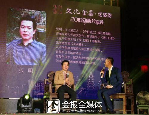 10月26日晚,“文化金華·憶婺韻”動聽分享會在古子城保寧門前舉行。多位本土作家、朗讀者從幕后走向臺前,分享金華的古城煙云、婺里鄉(xiāng)情、人世風(fēng)景,帶現(xiàn)場觀眾步入一場穿越時(shí)空的文化之旅。