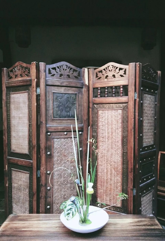 人們來古子城是沒法錯過一扇始終敞開著的棕色木門的,那家店的門楣上懸著幾個看不真切的古字。來客絡(luò)繹不絕,魚貫而入后,卻都是一溜兒愕呆——這里竟是個四方天井樓閣小院:周圍是高高低低的木雕、圓圓方方的瓦盆,而站在樓下門里的陰影中,便可把所有的焦點都曝露在層層墜落天井的明媚里。那是一幅令人目暖而神馳的畫卷,滿世界古檀色的物什,角上是精細雕刻的紋飾,天井中悄悄探出幾枝碧色的竹節(jié),石磨里滴滴淌淌著清洌水珠,踮腳上眺,二樓的木欄桿上是一排排小巧玲瓏鮮翠欲滴的盆栽。