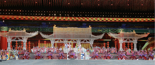 5月15日晚,北京國(guó)家體育場(chǎng)“鳥巢”是一片喜慶歡樂(lè)的海洋。作為亞洲文明對(duì)話大會(huì)的重要活動(dòng)之一,“亞洲文化嘉年華”在這里盛大呈現(xiàn)。來(lái)自亞洲各國(guó)的演員們帶來(lái)具有各自特色的歌舞節(jié)目,演繹了一出多姿多彩的亞洲風(fēng)情大聯(lián)歡。習(xí)近平主席和亞洲47個(gè)國(guó)家政要、國(guó)際組織負(fù)責(zé)人,以及3萬(wàn)余觀眾,現(xiàn)場(chǎng)觀看了這場(chǎng)中央廣播電視總臺(tái)自組建以來(lái)規(guī)模最大的專業(yè)化、國(guó)際化、高水平的文化藝術(shù)盛宴。而在這樣一場(chǎng)高規(guī)格的演出中,卻不乏金華元素——浙江婺劇藝術(shù)研究院陳美蘭新劇目創(chuàng)作團(tuán)隊(duì)在整場(chǎng)演出的唯一戲曲節(jié)目《盛世梨園》中精彩亮相。
