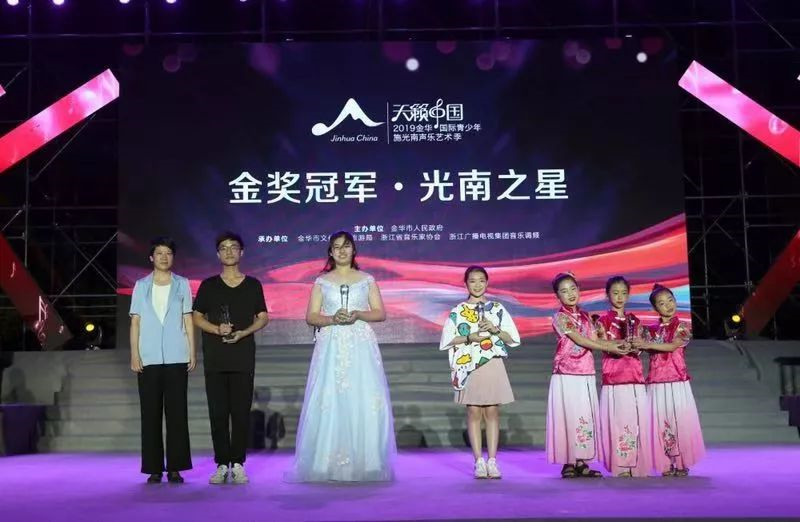 8月18日晚,在中國婺劇院·東廣場(chǎng)——藝術(shù)季頒獎(jiǎng)晚會(huì)的現(xiàn)場(chǎng),不僅頒發(fā)了金、銀、銅及優(yōu)勝獎(jiǎng),還誕生了四個(gè)組別的冠軍,他們除了獲得“光南之星”的稱號(hào),還得到了主辦方特別獎(jiǎng)勵(lì)的音樂獎(jiǎng)學(xué)金。
