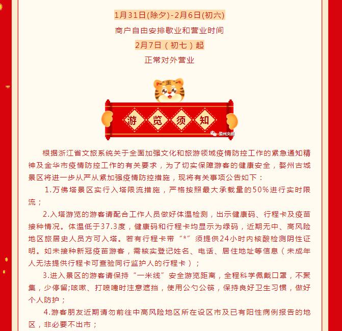 2022年婺州古城景區(qū)春節(jié)開放公告
