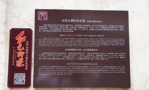 1939年2月22日,以臺胞領(lǐng)袖李友邦為隊長的臺灣義勇隊在浙江金華誓師成立。臺灣義勇隊是臺灣同胞直接參加祖國抗戰(zhàn)數(shù)量最多、影響最大、持續(xù)時間最長的一支隊伍。2014年9月1日入選第一批國家級抗戰(zhàn)紀(jì)念設(shè)施遺址,是大陸唯一一處涉臺抗戰(zhàn)遺址。2019年10月10日,被授予全國愛國主義教育基地。