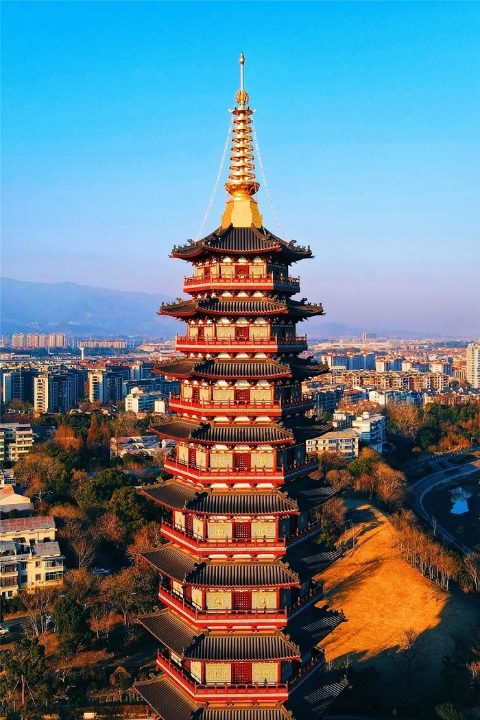 萬佛塔始建于北宋嘉佑七年(1062年),其原來為九層六角樓閣式磚木結(jié)構(gòu)建筑,初名為“密印寺塔”。因其塔身外壁上半部的每塊磚上雕有形態(tài)各異的精美如來佛像,一排排地結(jié)跏趺坐在蓮臺(tái)上,數(shù)以萬計(jì),故俗稱為“萬佛塔”。