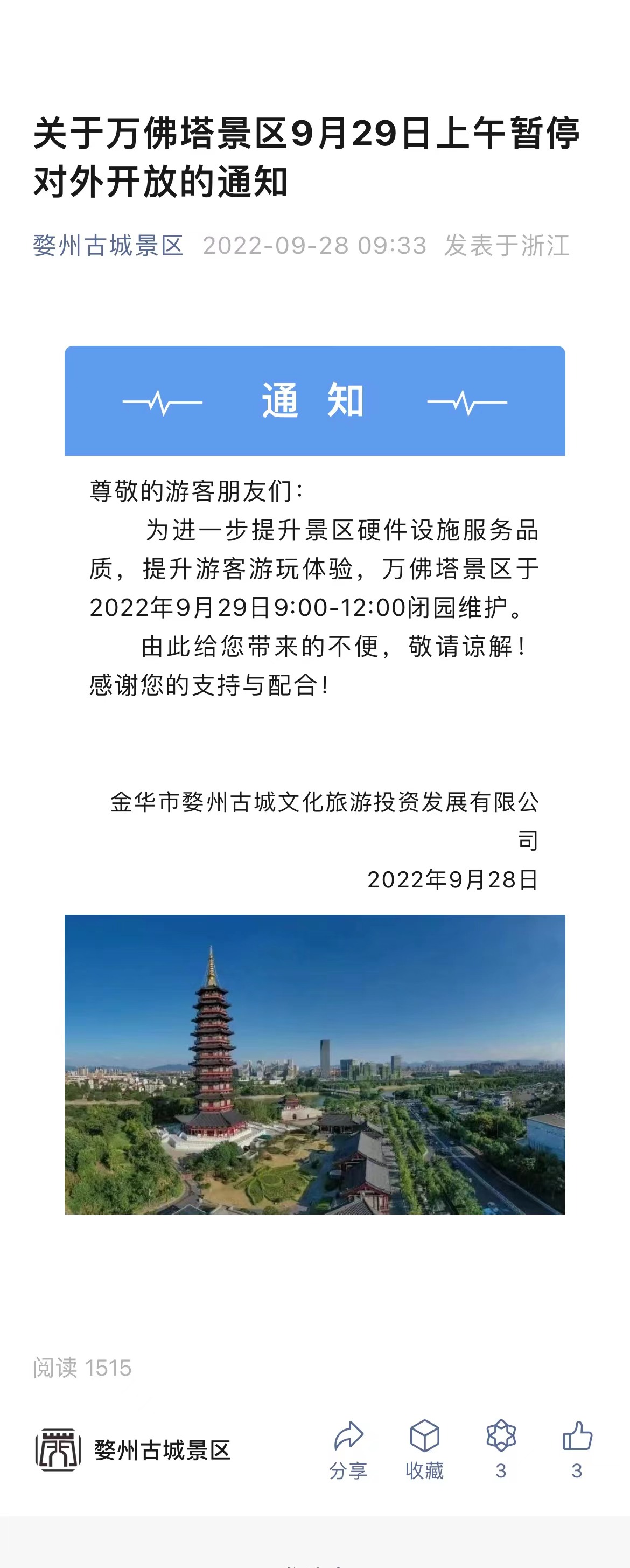 關(guān)于萬佛塔景區(qū)9月29日上午暫停對外開放的通知