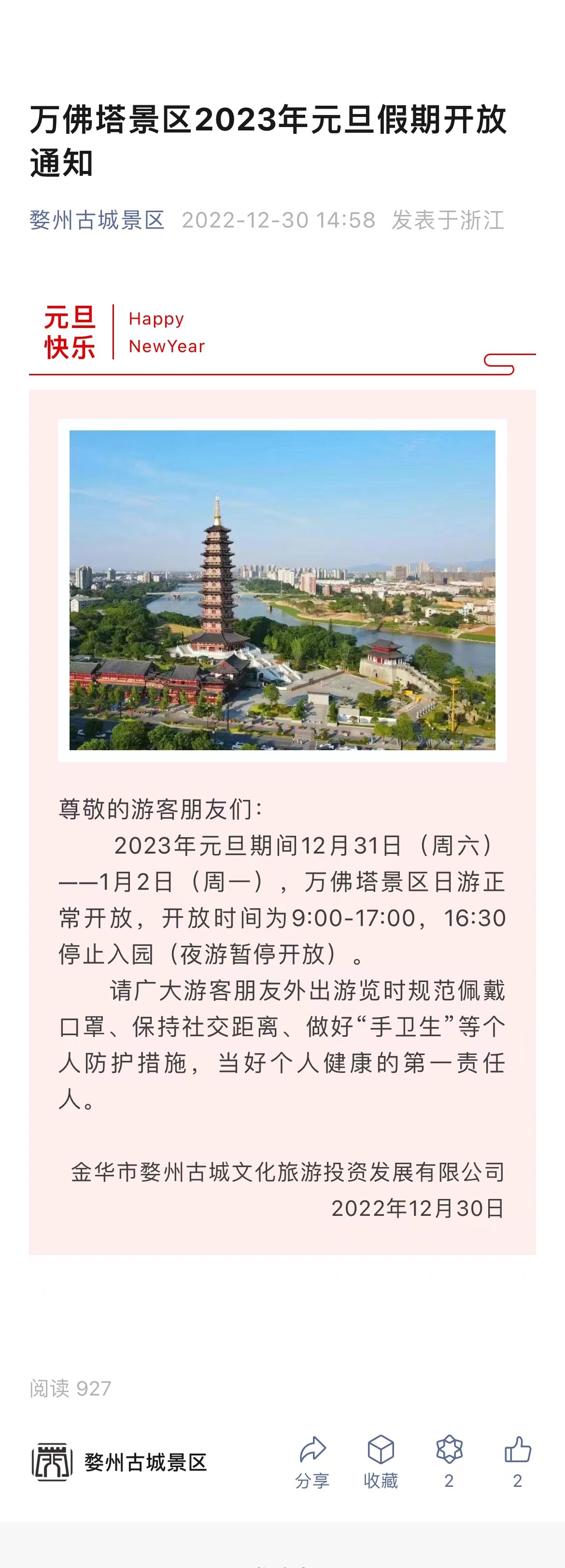 萬(wàn)佛塔景區(qū)2023年元旦假期開(kāi)放通知