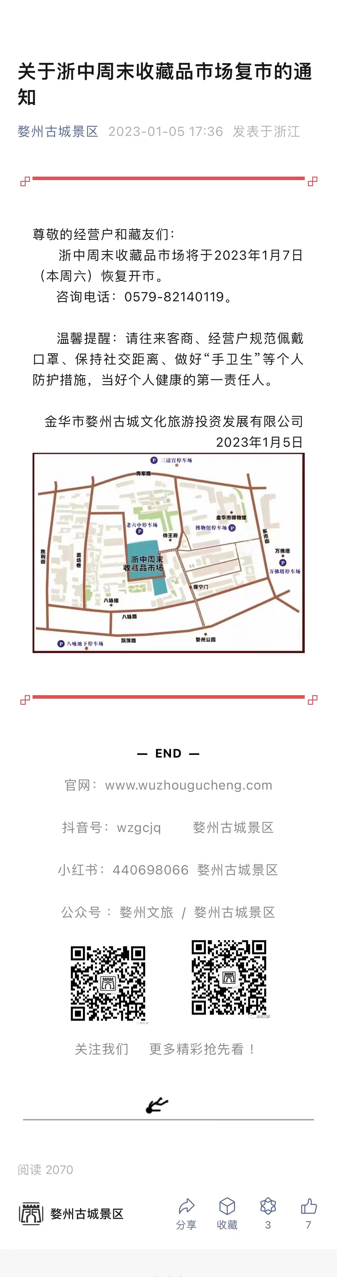 關(guān)于浙中周未收藏品市場復(fù)市的通知