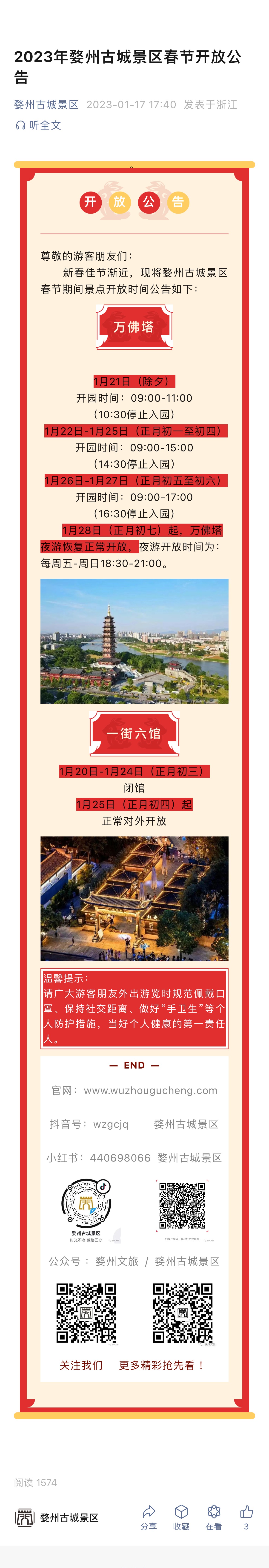 2023年婺州古城景區(qū)春節(jié)開放公 告